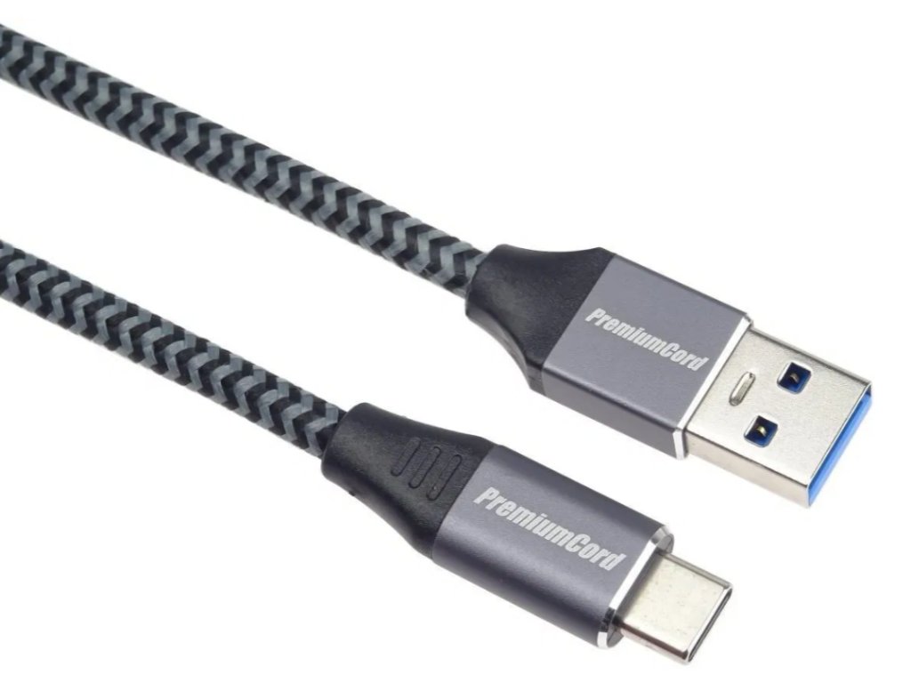 Datový kabel 2m - propojovací, male konektory: 1× USB-A (USB 3.2 Gen 1) s přenosovou rychlostí 5 Gbit/s + 1× USB-C (USB 3.2 Gen 2) s přenosovou rychlostí 10 Gbit/s, maximální proud 3 A, kovové tělo, stíněný, podpora rychlonabíjení, rovné zakončení, bavlněný oplet
